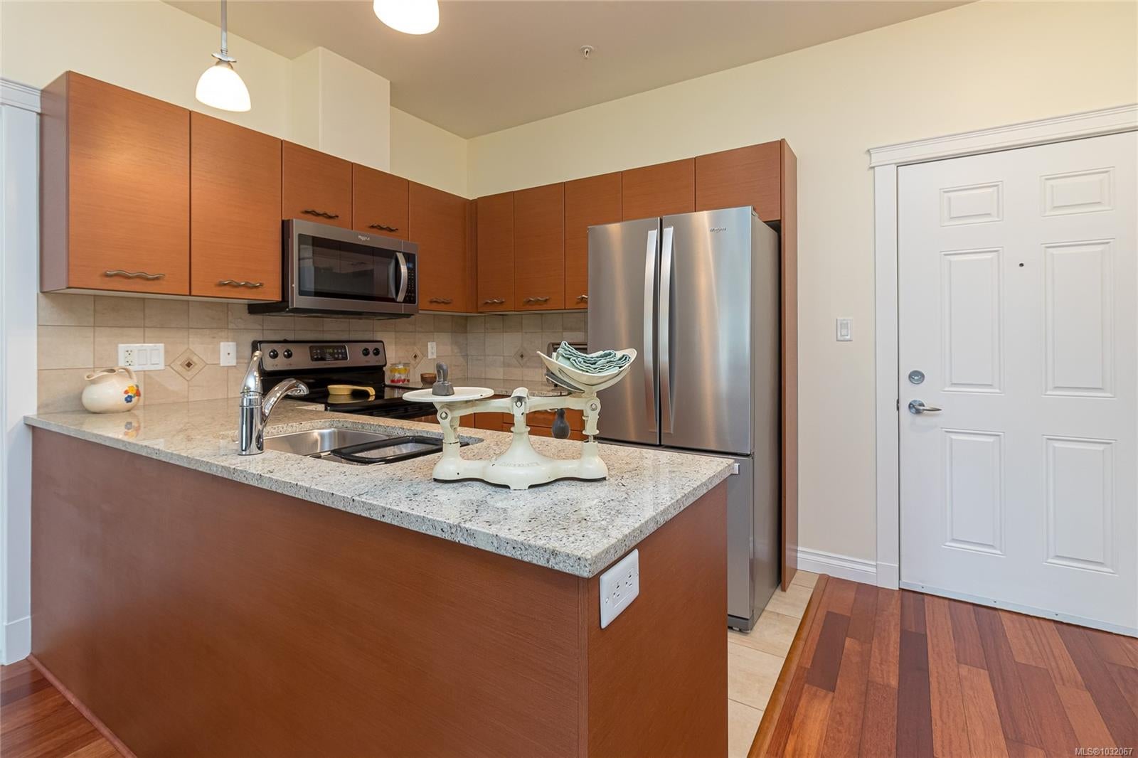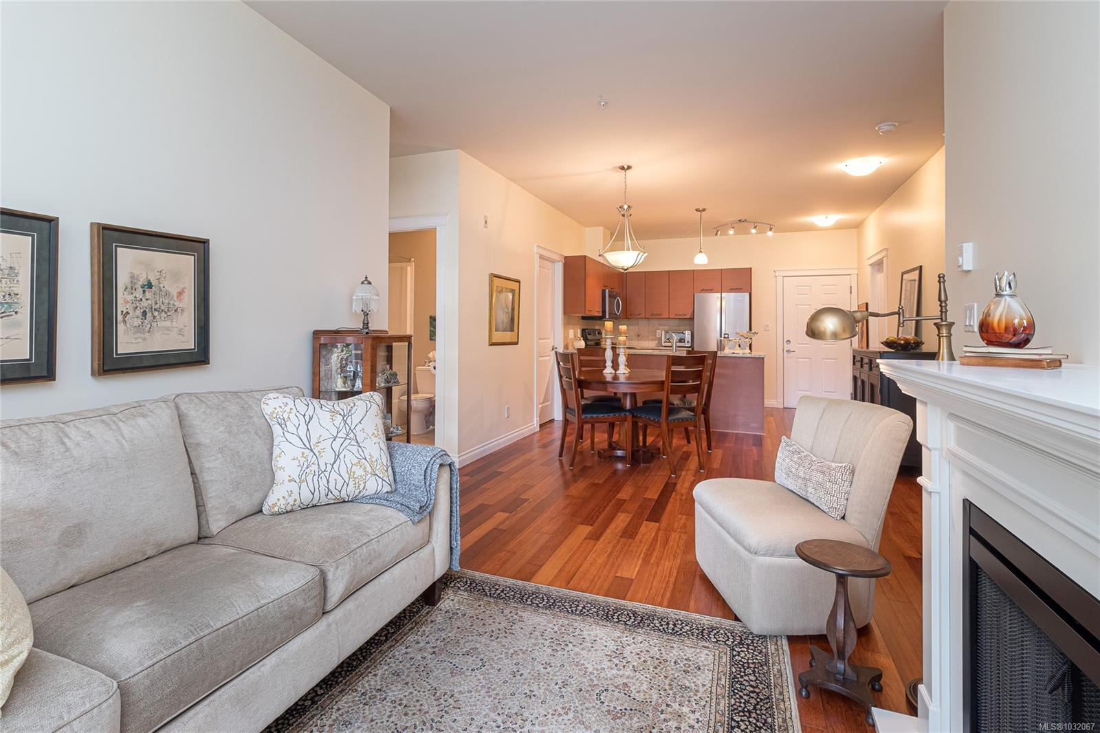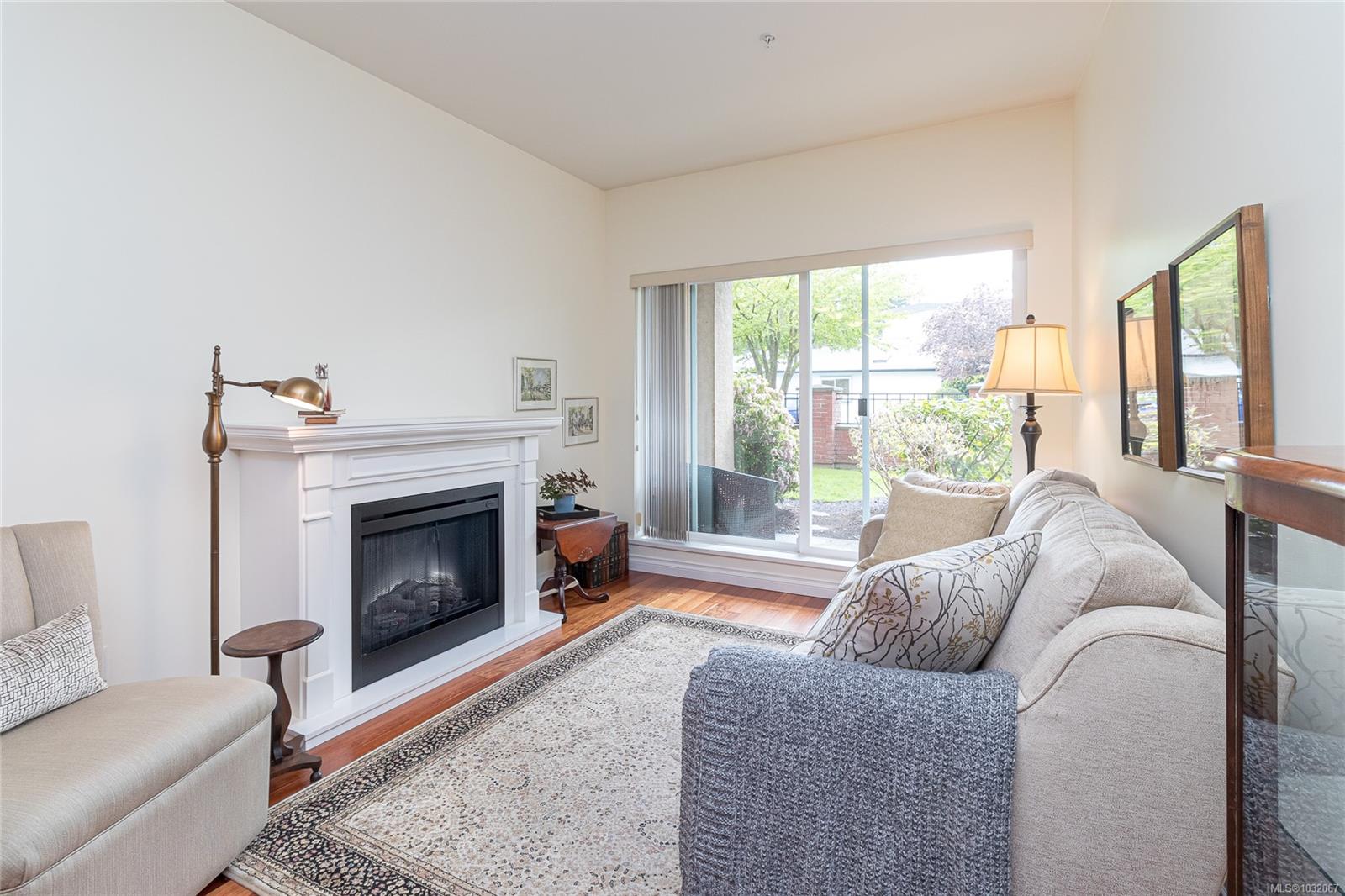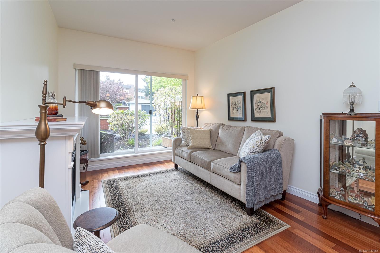 Proudly offering this SOUTH facing GROUND LEVEL 2 bed + den unit in the sought after ‘Brixton’ building. Centrally located in beautiful ‘Sidney by The Sea’ & just steps from Beacon Ave w/ all the Town’s amenities, this property affords the comfortable easy-care lifestyle you’ve been looking for. Park the car & enjoy the walkability from this location! Quality constructed in 2008, the boutique-style 22-unit complex is professionally managed w/ reasonable Strata Fees of $380/mth. Inside, large over-sized windows & a patio slider door flood the space w/ natural light. Wood floors, stone countertops, SS appliances, in-unit laundry & a thoughtful layout w/ bedrooms anchoring either side of the principal living area. The 8’x10’ den could easily be a guest room, hobby area, home office or TV lounge. Great storage, pet & rental friendly. Immediate proximity to YYJ, BC Ferries & endless outdoor enjoyment in & around the waterfront. The discerning Buyer will appreciate the quality throughout.