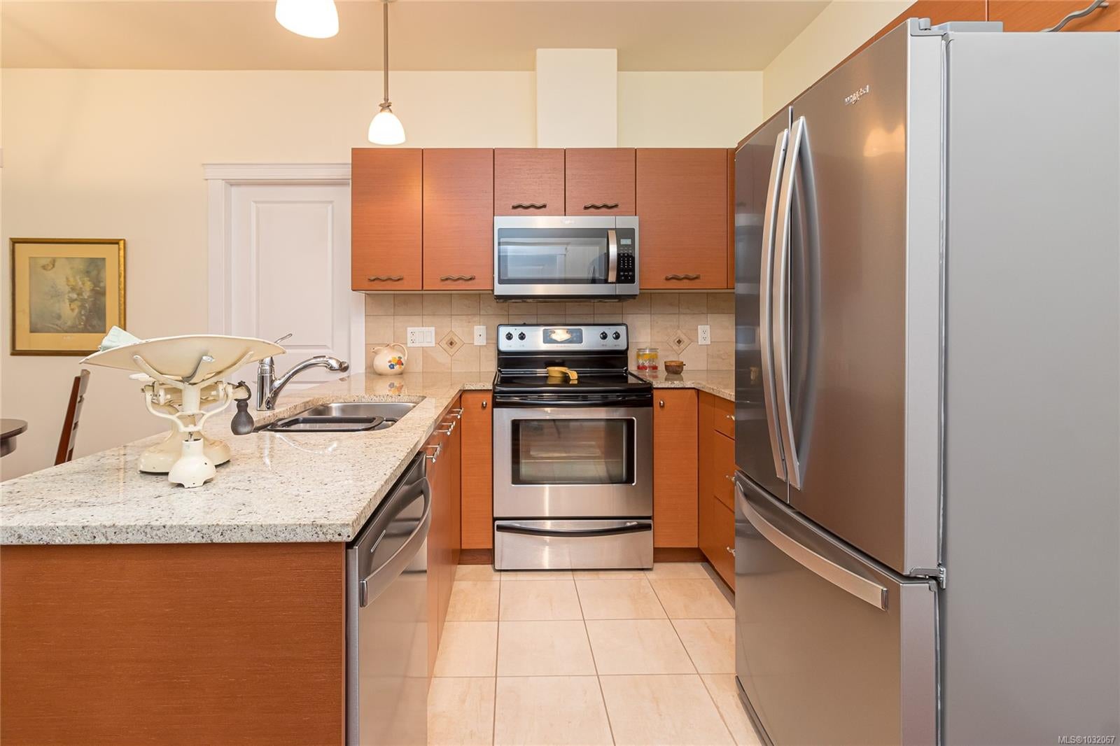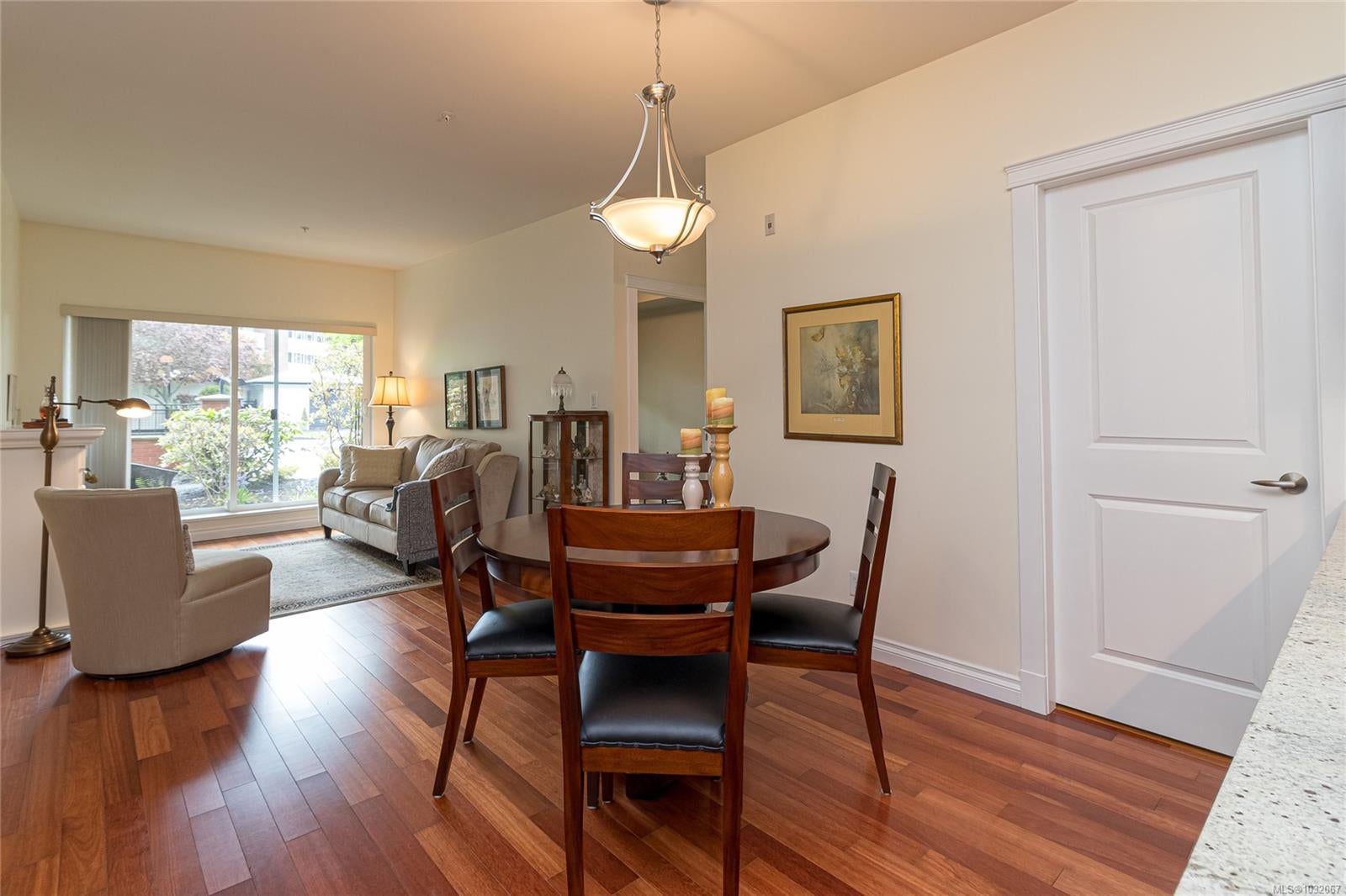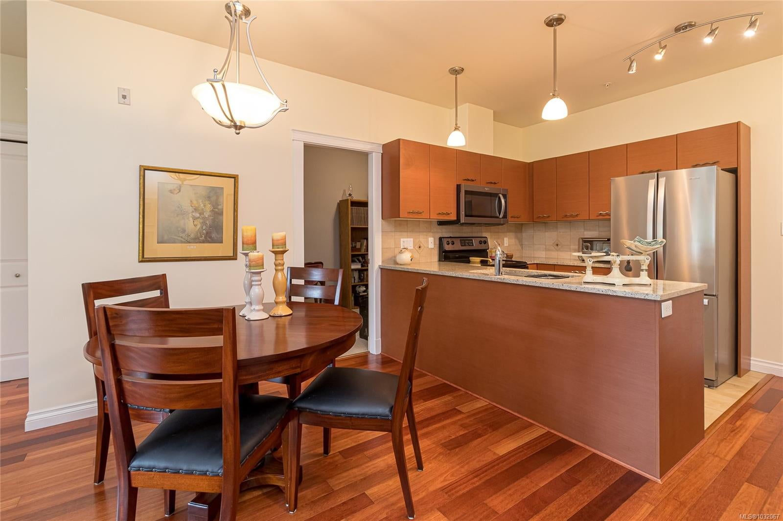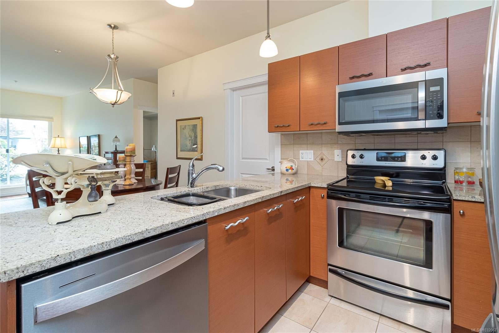 Proudly offering this SOUTH facing GROUND LEVEL 2 bed + den unit in the sought after ‘Brixton’ building. Centrally located in beautiful ‘Sidney by The Sea’ & just steps from Beacon Ave w/ all the Town’s amenities, this property affords the comfortable easy-care lifestyle you’ve been looking for. Park the car & enjoy the walkability from this location! Quality constructed in 2008, the boutique-style 22-unit complex is professionally managed w/ reasonable Strata Fees of $380/mth. Inside, large over-sized windows & a patio slider door flood the space w/ natural light. Wood floors, stone countertops, SS appliances, in-unit laundry & a thoughtful layout w/ bedrooms anchoring either side of the principal living area. The 8’x10’ den could easily be a guest room, hobby area, home office or TV lounge. Great storage, pet & rental friendly. Immediate proximity to YYJ, BC Ferries & endless outdoor enjoyment in & around the waterfront. The discerning Buyer will appreciate the quality throughout.
